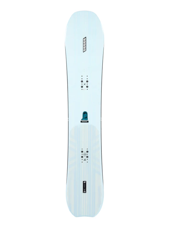 De Passport is ontworpen voor de gemiddelde tot ervaren rijder en heeft een unisex formaat. Hij is directioneel in elk opzicht, maar blijft switch- en fakievriendelijk. De iets bredere taillebreedte is 8 mm taps toelopend, zodat je gemakkelijk kunt draaien en drijven in diepe sneeuw. Dit wordt aangevuld met een langgerekt rockerprofiel vanaf de voorste insert pack tot in de tip. Een strakkere sidecut radius in de tip en tail zorgt ervoor dat je gemakkelijk bochten kunt nemen, terwijl een langere radius tussen de voeten zorgt voor een soepel en voorspelbaar verloop van de bocht.