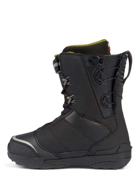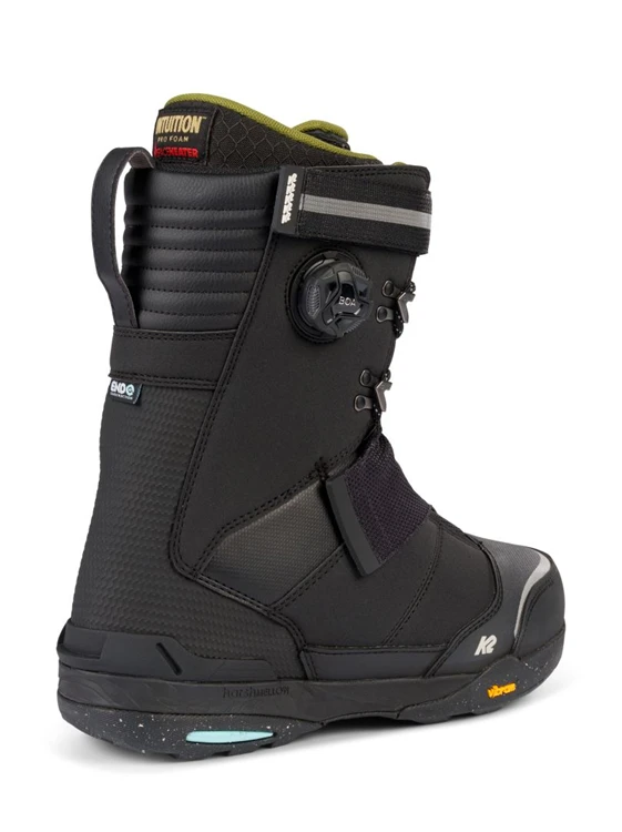 We hebben de Waive volgestopt met de beste splitspecifieke features – en dat begint al bij de zool. Ons vibratie dempende Harshmellow™ materiaal is verpakt in een Vibram® V5 buitenzool – duurzaam, lichtgewicht en gripvast. Een crampon-compatibele hielstabilisator helpt je hiel in lijn te houden tijdens de wandeling omhoog en geeft de afdaling extra zekerheid. We hebben ons handelsmerk Endo™ Construction heel counter aangepast, zodat de K2 Waive snowboardschoen een walk mode heeft. Door de BOA® knop los te laten, zal het kuitpaneel van de schoen zich openen, wat je de mogelijkheid geeft voor een langere pas in de skin track, maar alle stabiliteit in de wereld die je nodig hebt voor de rit naar beneden. Een traditionele veter, externe Power Strap en veterafdekking houden je veilig en houden de sneeuw buiten. Het spreekt voor zich, maar de magie begint bij een snowboardschoen aan de binnenkant. Onze Intuition® Pro Foam Liner met Spaceheater™ is warm, comfortabel en warm te maken. Een comfortabele en aanpasbare Conda™ heel retention device houdt je voetpositie comfortabel en neemt de stress van heel lift weg als het terrein een beetje pittig wordt.