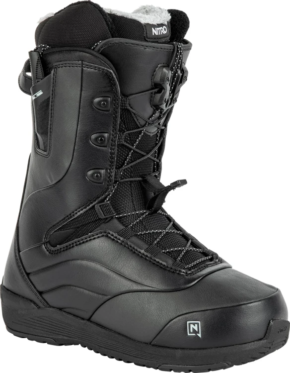 De onlangs verbeterde Crown snowboardschoen voor dames is nu nog duurzamer met de toevoeging van een nieuwe buitenzool en Rupper Impact Panels voor een duurzame grip bij een minimaal gewicht. Comfort is cruciaal, en de Women’s Cloud 6 Liner en Women’s Solo Ortholite® Footbed zorgen voor de pro-level pasvorm en respons die je wilt met het comfort waar je van droomt. De Re/Lace Liner Locker functie zorgt voor moeiteloze aanpassing op de piste op elk moment. Tegelijkertijd zorgt de 45° Laceglider van het TLS zonale vetersysteem voor een soepele en snelle lace-up oplossing. Dus doe jezelf een plezier en upgrade je comfort dit seizoen met de Nitro Crown snowboardschoen voor dames.